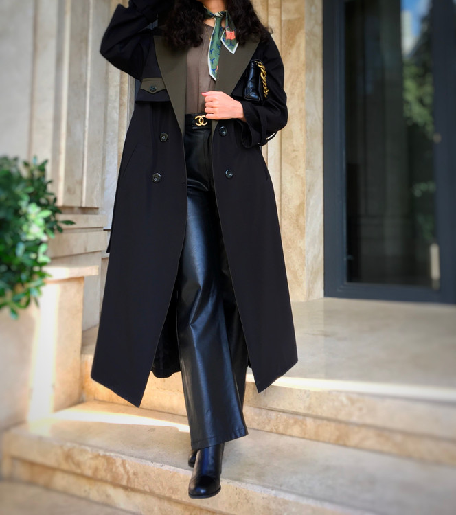 دوخت مزوندوزی حرفهای، آسترکشی کامل و کمربند دورو با دو رنگ سبز و مشکی باعث میشود این کت، هم از نظر طراحی و هم از نظر کیفیت در سطحی ممتاز قرار گیرد. علاوه بر این، میتوانید قد کت و رنگ دلخواه خود را شخصیسازی کنید تا دقیقاً مطابق سلیقهتان باشد.